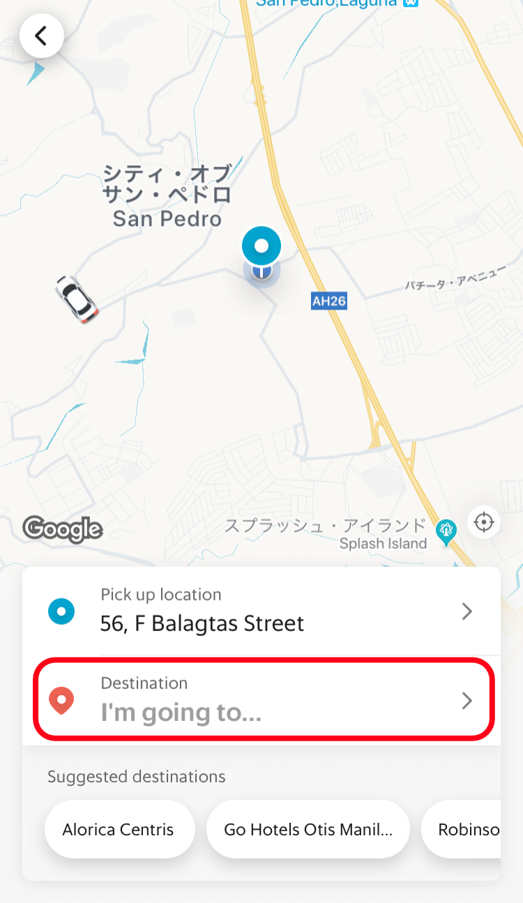 目的地の指定方法は直接住所入力する方法と地図に直接ピンを立てる方法があります。また、通常のタクシーに乗る際はドライバーに目的地を伝える必要があり、ドライバーが目的地を分からないなんて事もよくあります。Grab(グラブ)の場合は、ドライバーに目的地を伝えなくても、ドライバーはアプリから目的地までの経路や交通状況などを確認しながらあなたを目的地まで送り届けることができるので、英語で正しい行き先を伝えられるか不安な方も安心です。