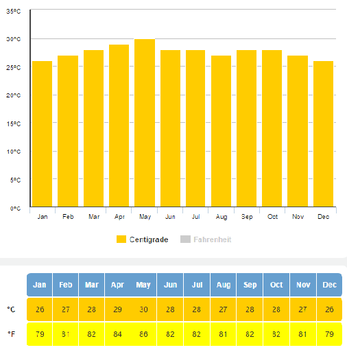 天気ですが6~11月が雨期、12~5月が乾期で、平均気温は26~27℃と温暖な気候です。