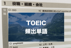役職、就職、職業、景気、勤務、商品、出張、電話などがジャンル分けされ、TOEICで頻出頻度の高い単語達がリストアップされています。ジャンル分けされているからそれぞれの単語が繋がりやすくもなります。